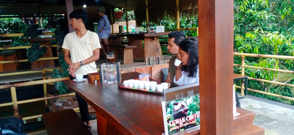 One of the interludes from the trip that actually has a unique story where we can enjoy coffee and also see the process they do since how to pick and sort good beans from coffee plants grown in a garden that is not so big but this is an example of that in making good coffee. Tasty requires a long process and is traditionally processed in which it participates in generating business opportunities for the community. With such an arrangement plus various unique flavors found in nature, they are taken and used as a concoction to enhance the taste of the coffee so that it becomes different. For example, cinamon, pandan, cacao bean, and other variations so that the enjoyment of drinking coffee with the addition of flavors from nature makes it very interesting. They also sell their products with very good packaging. There is nothing wrong when you visit Bali to take the time to stop by this place as an additional new experiences.